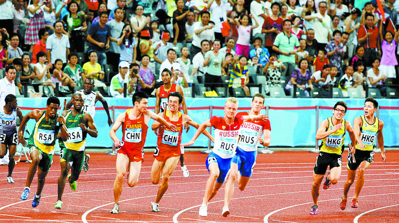 大運(yùn)會(huì)中深圳健兒男子4X100米接力賽上創(chuàng)佳績。鄭東升攝