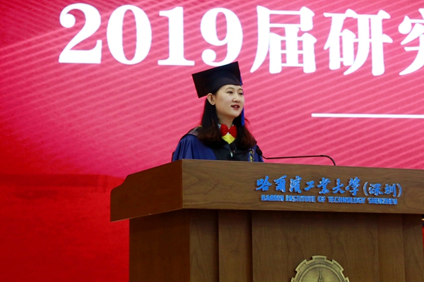 學(xué)生代表、土木與環(huán)境工程學(xué)院碩士畢業(yè)生劉雨熹感謝母校的悉心指導(dǎo)和精心栽培。她回憶起在哈工大(深圳)學(xué)習(xí)、生活的點(diǎn)點(diǎn)滴滴時說到,與同學(xué)們在浩如煙海的文獻(xiàn)經(jīng)典里刻苦專研、實(shí)驗(yàn)室里通宵達(dá)旦的畫面歷歷在目,轉(zhuǎn)眼卻到了分別時刻。在今后的人生路上,她希望與畢業(yè)生一道為民族復(fù)興鋪路架橋,為祖國建設(shè)添磚加瓦!