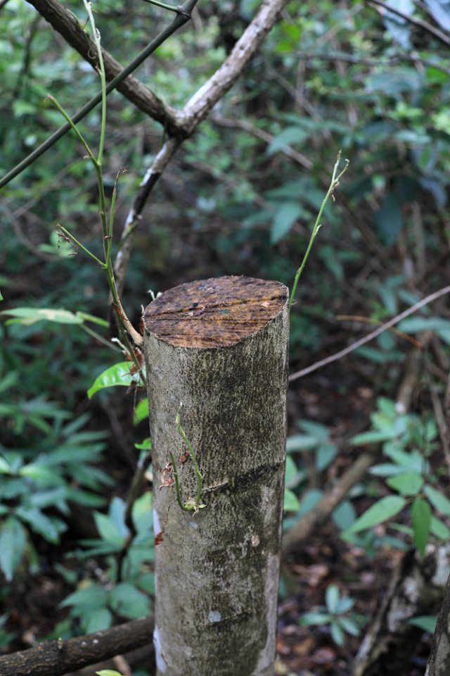 12月24日上午,記者再次來到首次發(fā)現(xiàn)盜采土沉香的地點(diǎn)。經(jīng)過近兩個(gè)小時(shí)的搜尋,在東北側(cè)山坡和溪谷中,又接連發(fā)現(xiàn)了6棵被盜伐的疑似野生土沉香。記者隨即將情況向仙湖植物園管理處副主任、植物專家張壽洲博士通報(bào)了情況,張博士告訴記者,管理處會盡快勘查現(xiàn)場,對被破壞的土沉香進(jìn)行處理。"通常情況下,被鋸斷的土沉香不會死亡,我們會根據(jù)實(shí)際情況對受損的植株采取相應(yīng)的保護(hù)措施。另外,我們會用水泥、油漆對土沉香被盜采盜伐的斷面進(jìn)行封閉處理,讓不法分子盜采不到香料。"張博士說。