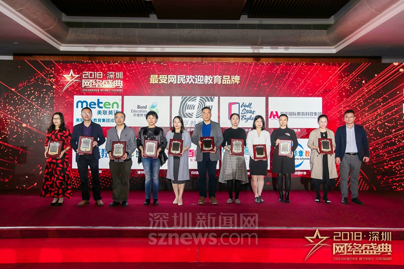 “十大行業(yè)最受網(wǎng)民歡迎品牌”獎項(教育)獲獎代表上臺領(lǐng)獎