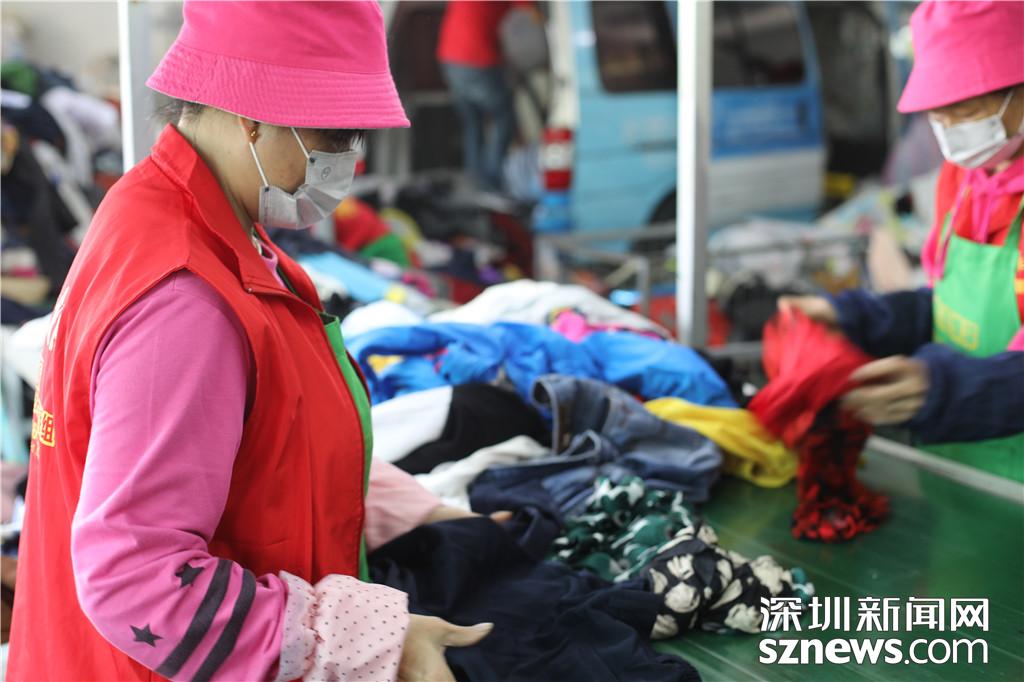 工作人員開始對回收的衣服進(jìn)行第一次分揀