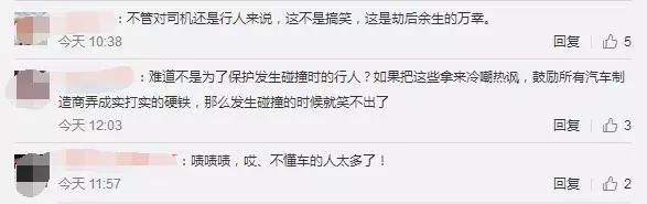 也有網(wǎng)友表示:"不管對司機還是行人來說,這不是搞笑,這是劫后余生的萬幸""防撞效果很好啊,本身就是要緩沖的""塑料懟鋼圈不就這樣?""難道不是為了保護發(fā)生碰撞時的行人?"。