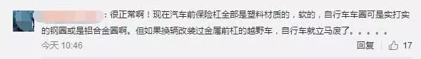 還有有不少網(wǎng)友指出,"很正常?。‖F(xiàn)在汽車前保險杠全部是塑料材質(zhì)的,軟的,自行車車圈可是實打?qū)嵉匿撊蚴卿X合金圈啊。但如果換輛改裝過金屬前杠的越野車,自行車就立馬廢了""如果把這些拿來冷嘲熱諷,鼓勵所有汽車制造商弄成實打?qū)嵉挠茶F,那么發(fā)生碰撞的時候就笑不出了""對一個局部點進行沖擊。力度是非常大的,換其他大部分車都一樣"。