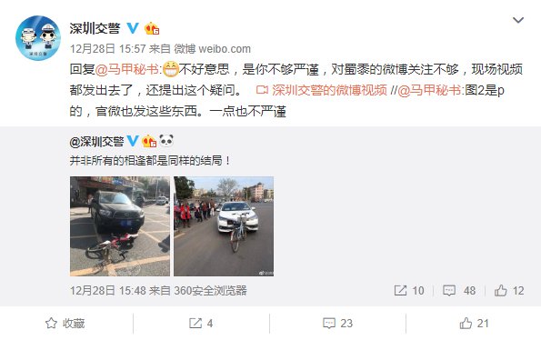 這……真的不是 P圖?確定不是擺拍?圖片發(fā)出之后,不少網(wǎng)友表示難以置信,甚至有人 @深圳交警表示抗議:"圖是 p的,官微也發(fā)這些東西。一點也不嚴謹"。深圳交警看后只能亮出以上視頻,"以示清白"!