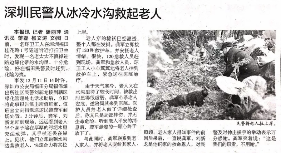 ★★老人不慎墜入水溝,福保派出所民警龔軍、劉新龍緊急出動救援,行動迅速,救援有力,老人轉(zhuǎn)危為安。這樣的事情經(jīng)常發(fā)生,民警視群眾如親人,老吾老以及人之老。