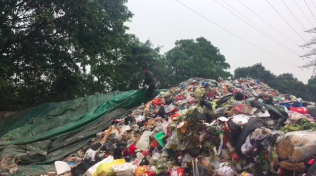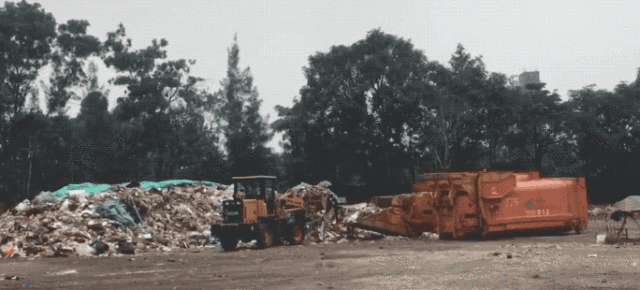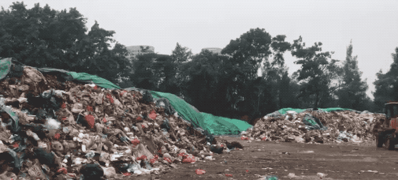 一位正在用帆布遮蓋垃圾的工作人員表示,這里堆放的垃圾全部來自大浪街道轄區(qū)內(nèi)的生活垃圾。據(jù)他了解,他們公司每天會運送9車垃圾,一車可運來十多噸。