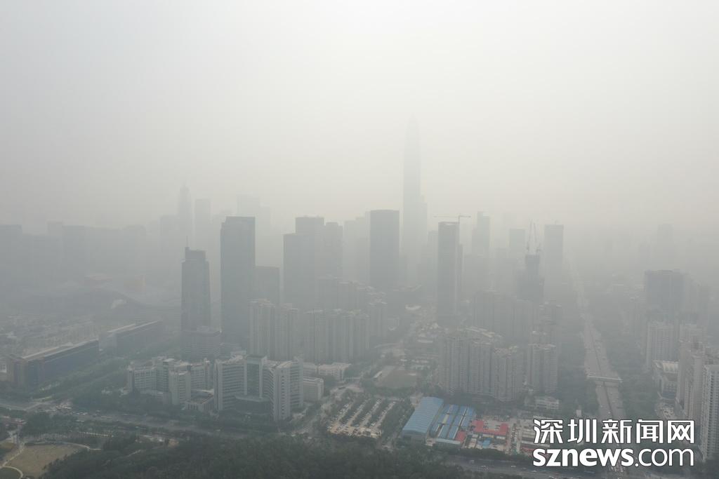 1月12日,霧霾襲深,深圳天氣君發(fā)布預(yù)警,今天最好不要在室外玩耍。記者中午用無人機(jī)航拍福田CBD區(qū)域,鏡頭下,市民中心和平安金融大廈兩個(gè)地標(biāo)幾乎無法辨別,新洲路上能見度很低,一切都仿佛浸在化不開的濃湯里。深圳天氣君在微博提醒:弱北風(fēng)影響下,不利于污染物擴(kuò)散,我市中西部地區(qū)下午會(huì)持續(xù)十面“霾”伏,灰霾黃色預(yù)警信號(hào)生效中,各位盡量不要長時(shí)間戶外活動(dòng)。
