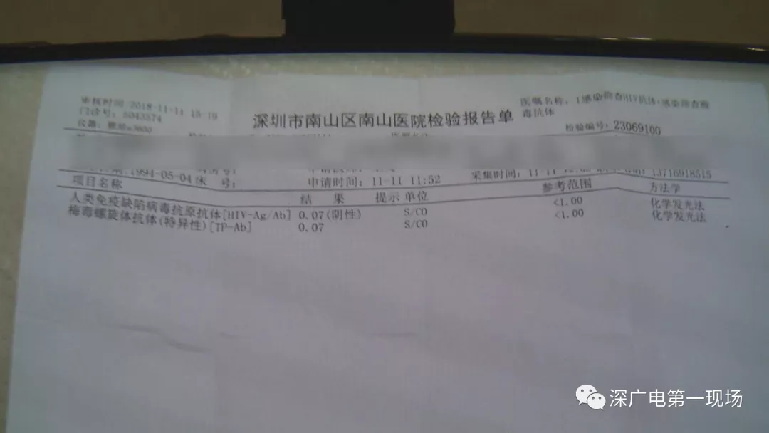 隨后,記者撥打吳某的電話,對(duì)報(bào)料人所說的情況進(jìn)行核實(shí)。電話中吳某告訴記者說他的病已經(jīng)治好了,并且給記者發(fā)來一張2018年11月11日,南山醫(yī)院的檢驗(yàn)報(bào)告單。