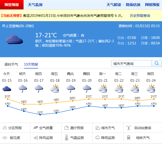 深圳新聞網1月14日訊(記者 劉婷)1月為深圳灰霾多發(fā)期,空氣質量較差,注意預防呼吸道疾病。市氣象臺預測15日開始,新一股冷空氣來深,雖然這股冷空氣的實力不及去年12月底的那股寒潮,但風來了,能見度即將好轉,可以緩解一下陰霾的天空啦。