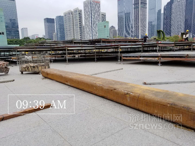 深圳建筑設計總院有限公司總工程師王啟文告訴記者,市民中心南廣場地下兩個地下室,也就是舞臺最重的部位下方是空的,舞臺跨越地下室的跨度為9米,從兩側懸挑。最重的部位達37噸,正好在承重力最小的中間部位。