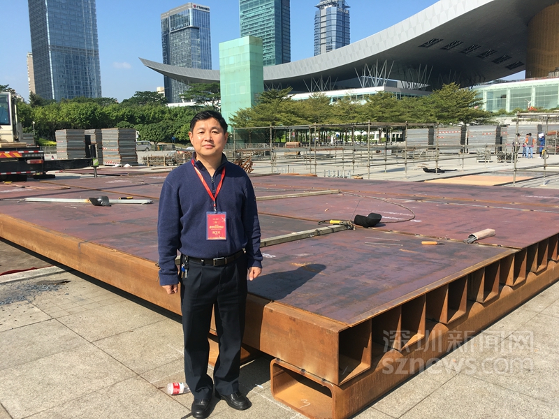 深圳建筑設計總院有限公司總工程師王啟文在舞臺搭建施工現場(王啟文本人提供)