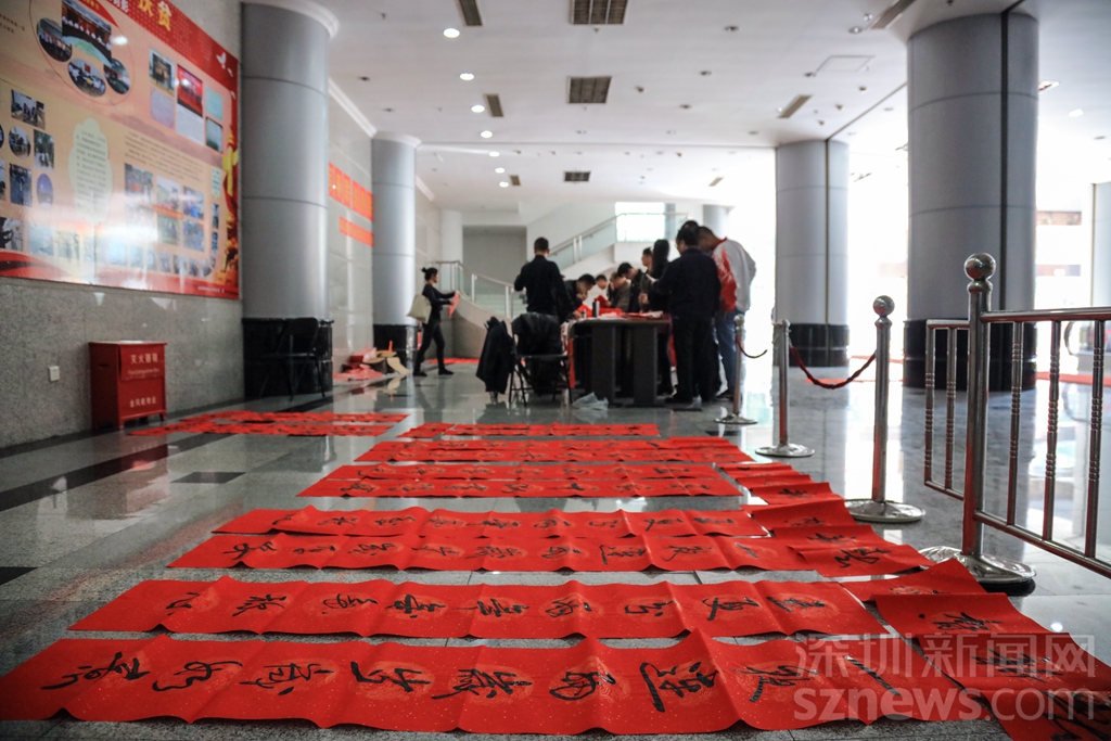 深圳商報大廈一樓變成春聯(lián)的世界