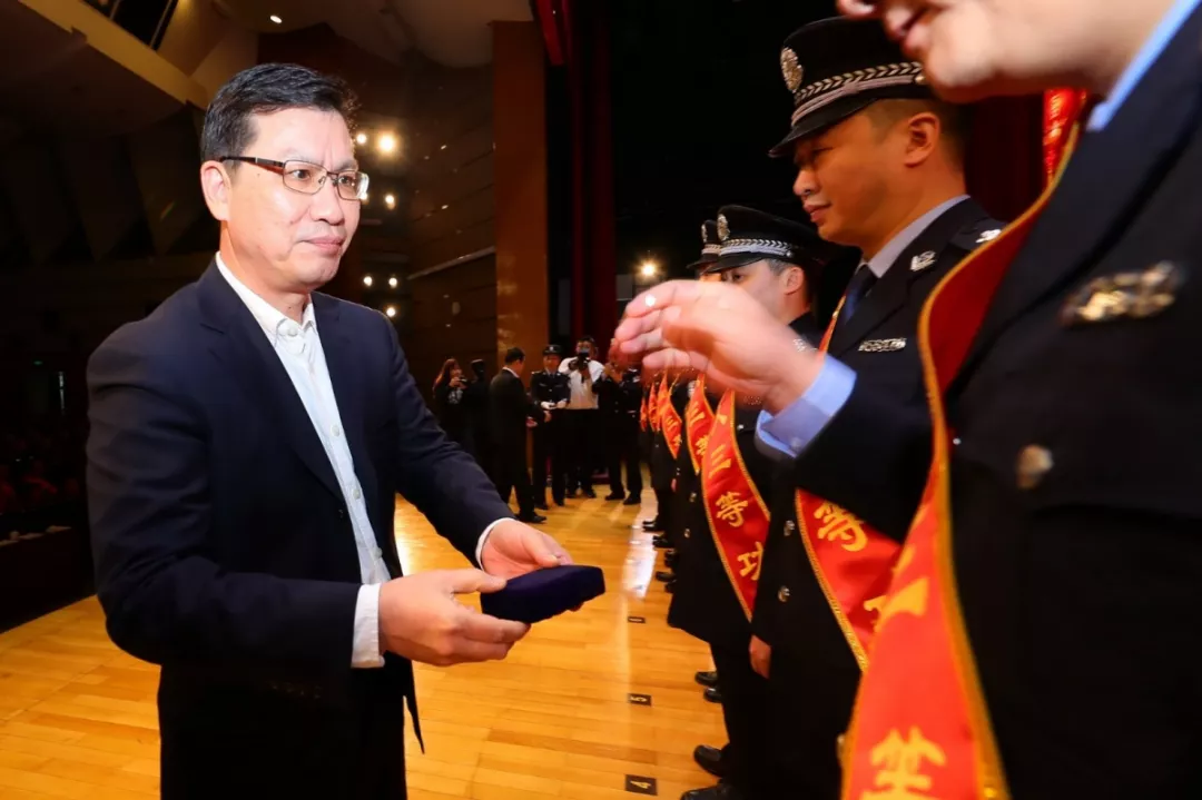 市公安局黨委副書記、常務(wù)副局長周兆翔為個(gè)人一等功頒獎(jiǎng)