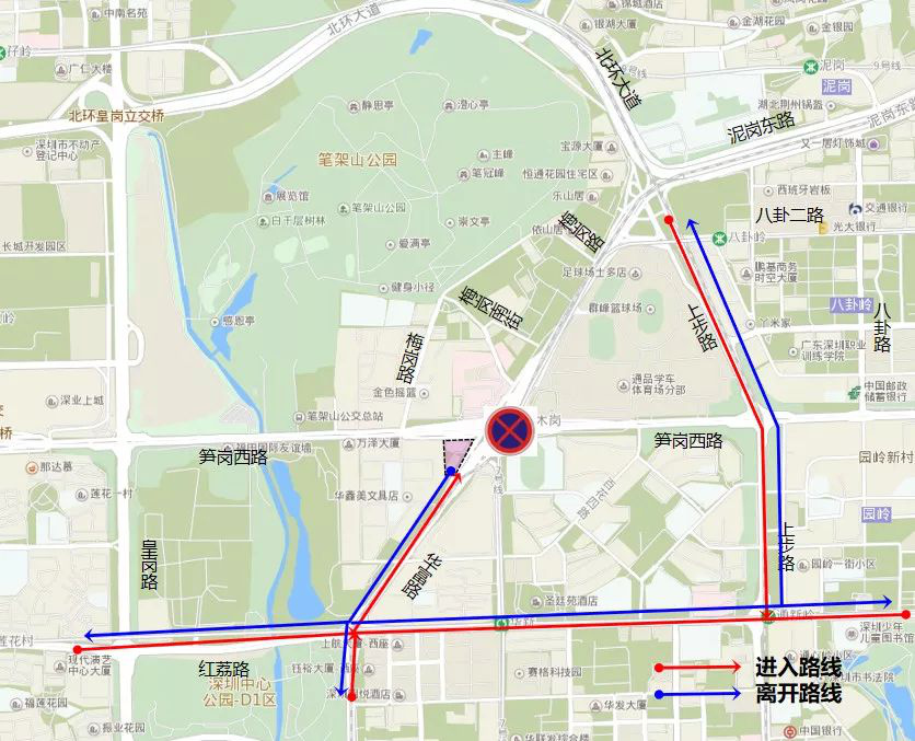 原經(jīng)筍崗西路西行往醫(yī)院交通調(diào)整為:筍崗西路 -泥崗西路調(diào)頭。