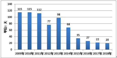 2009-2018年逐年霾日數(shù)(單位:天)