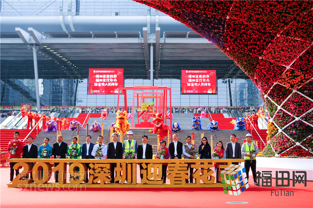 領(lǐng)導(dǎo)嘉賓向來(lái)深建設(shè)者贈(zèng)送年花。