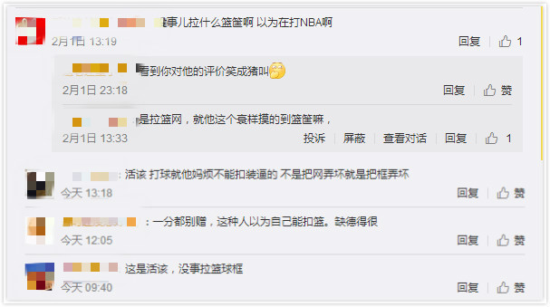 還有一些網(wǎng)友借機(jī)表達(dá)了自己對(duì)某類人的"墻裂"不滿!"沒事兒拉什么球框啊,以為在打 NBA?。ⅲ⒒钤摚蚯蚓蜔┎荒芸圻€裝 X的"......