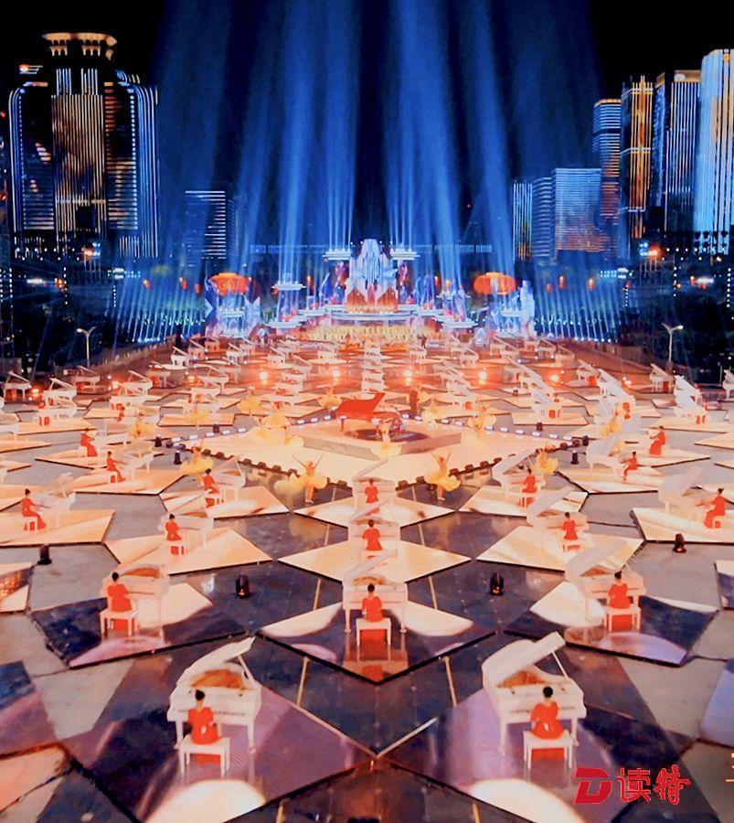 郎朗與仿生機械臂同臺演奏,連同近150名深圳鋼琴愛好者合奏出這一曲“友誼之歌”。