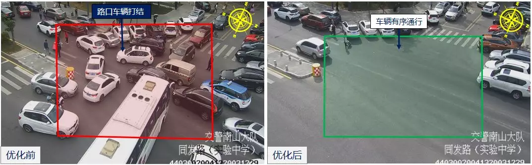 2月17日下午,接送學生至深圳實驗學校的車輛較多,大量車輛??柯愤吪抨牭群?影響車輛通行效率,導致同發(fā)/新高路口車輛溢出,深圳交警根據現場情況,采用步伐保持放行,優(yōu)化路口配時參數及綠信比,快速疏解同發(fā)/同沙路口北面車輛,防止同發(fā)/新高路口打結。