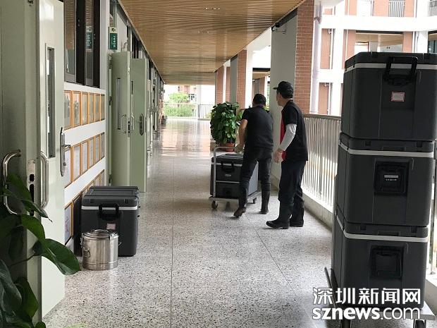 送餐人員在上午課程結(jié)束前將午餐送到每個(gè)班級(jí)門口