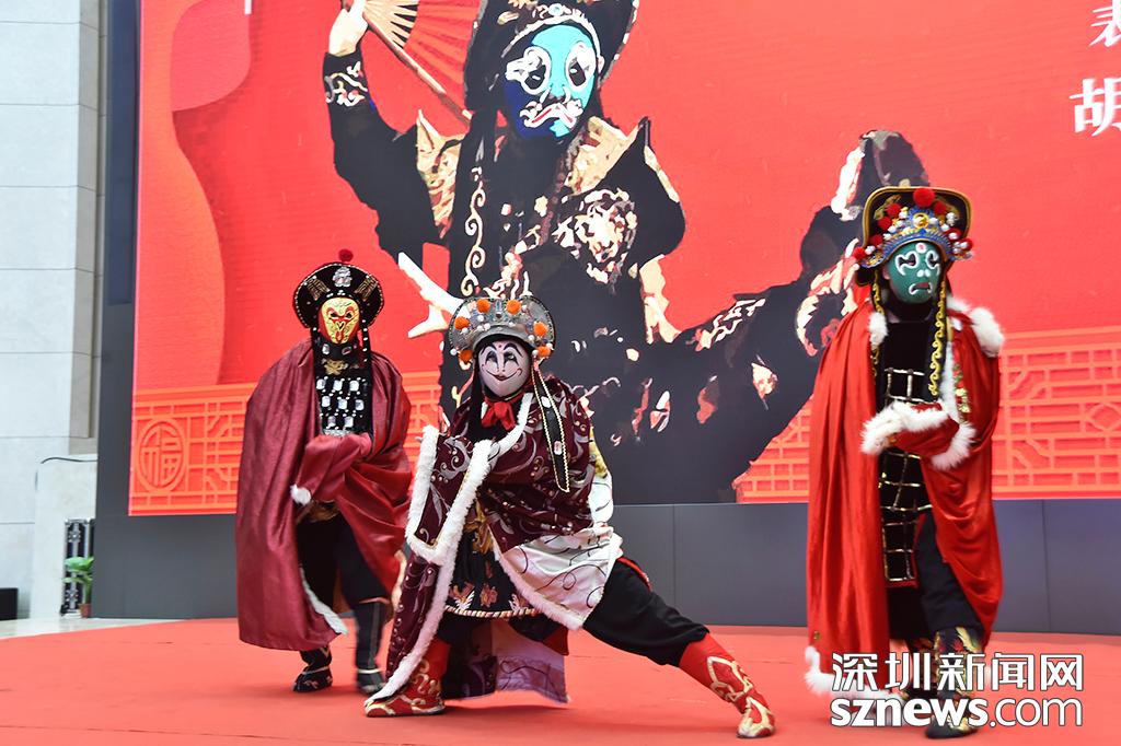 現(xiàn)場表演了川劇變臉,變臉藝人們除了在臺上表演,還走下舞臺與觀眾互動