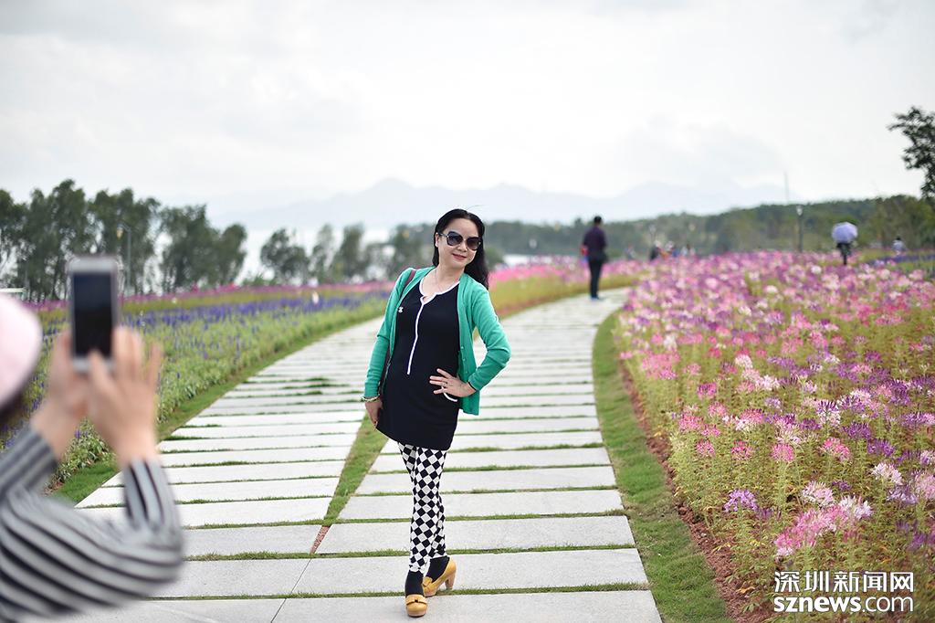 醉蝶花花海前,兩位市民擺出“Pose”合影