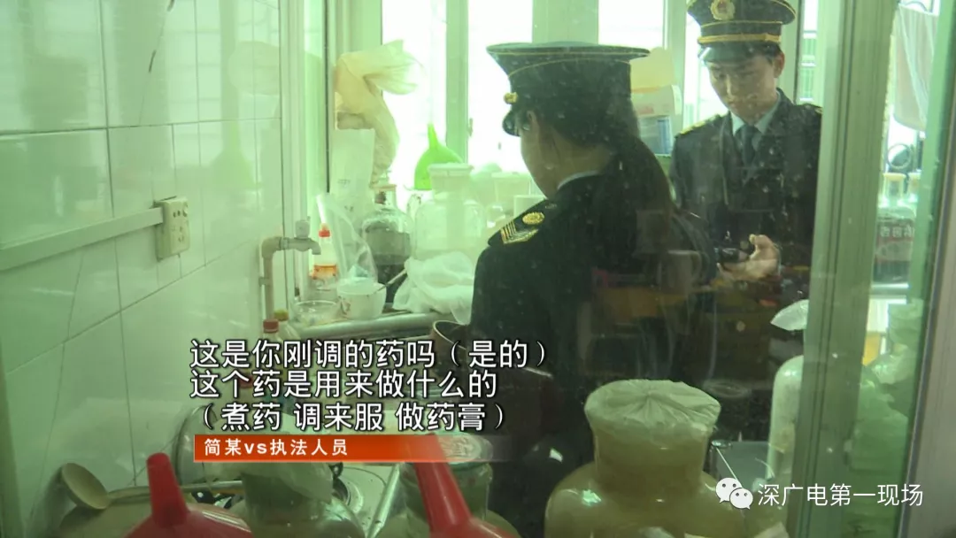 執(zhí)法人員在屋內(nèi)發(fā)現(xiàn)了大量的藥材、藥酒、醫(yī)療用品。所謂的“治療室”內(nèi)還發(fā)現(xiàn)了貼有用來(lái)收款的二維碼。