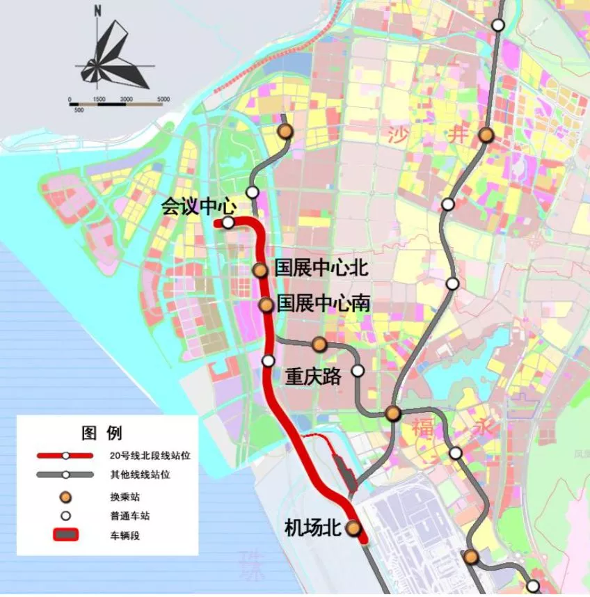 20號(hào)線(xiàn)北段起于寶安國(guó)際機(jī)場(chǎng)規(guī)劃T4航站樓,在規(guī)劃T4航站樓北側(cè),11號(hào)線(xiàn)東側(cè)設(shè)機(jī)場(chǎng)北站,與11號(hào)線(xiàn)、穗莞深城際線(xiàn)換乘。