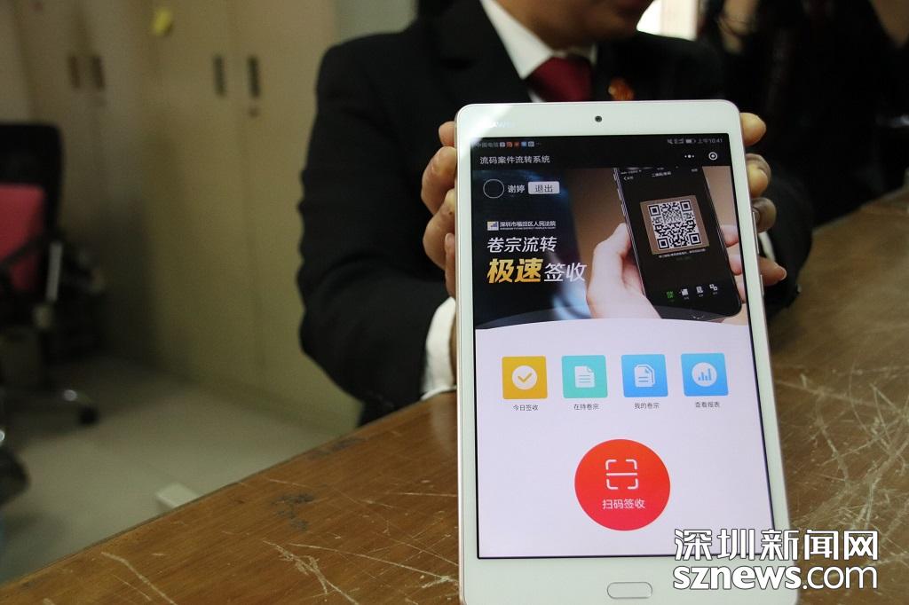 法官謝婷展示福田法院的流碼案件流轉(zhuǎn)系統(tǒng),該系統(tǒng)可節(jié)省80%的簽卷時(shí)間