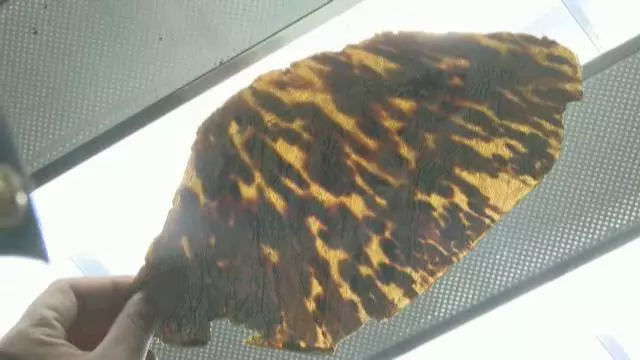 經(jīng)華南野生動物物種鑒定中心鑒定,這些物品都是海龜科海洋動物——玳瑁的背甲殼。