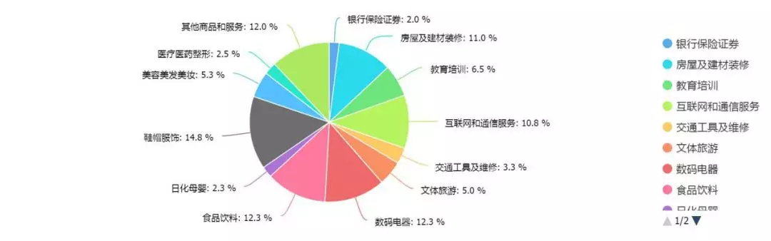 在調(diào)查的行業(yè)中,受訪者普遍反映消費(fèi)侵權(quán)主要集中在鞋帽服飾、數(shù)碼電器、食品飲料、房屋及建材裝修、互聯(lián)網(wǎng)和通訊服務(wù)行業(yè),這些行業(yè)的消費(fèi)維權(quán)數(shù)據(jù)均超過(guò)10%,而鞋帽服飾行業(yè)的侵權(quán)行為最為常見,比例高達(dá)14.8%。