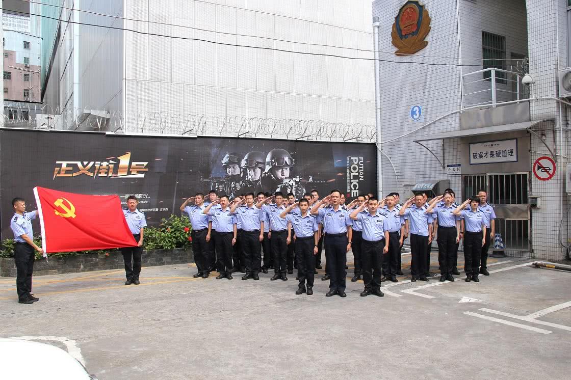 照片中,在水泥門樓的一側(cè)掛著一塊政府機(jī)關(guān)牌匾,白底黑字落有“深圳市公安局福田派出所”幾個(gè)大字。門樓上的五星紅旗熠熠生輝,透過門樓,內(nèi)部有個(gè)寬敞的小院,供巡邏車停放及日常操練,再往里走便是一幢3層樓高的辦公樓,辦公樓的中央懸掛一枚警徽,彰顯警隊(duì)的莊嚴(yán)。一樓是戶政室,一縷陽光透過窗戶灑進(jìn)來,讓辦事的群眾感到溫暖,也給門欄上“堅(jiān)持原則 方便群眾加強(qiáng)管理熱忱服務(wù)”16個(gè)字鍍上了金邊,這是福田派出所對(duì)轄區(qū)老百姓的堅(jiān)定承諾。