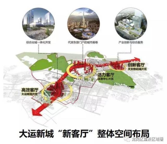 其中,大運新城新客廳包括大運樞紐片區(qū)、深港中心片區(qū)和天安數(shù)碼城片區(qū)。