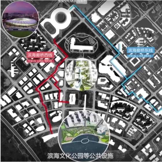 寶安中心區(qū)與前海共同作為深圳西部城市中心和城市客廳的組成部分,3月1日,位于寶安中心區(qū)的濱海廊橋開工,該濱海廊橋兼顧市民休閑、運動、景觀,實現(xiàn)地下、地面、地上三層一體,立體連通寶安體育場、核心商務區(qū),灣區(qū)之聲音樂廳、濱海文化公園等重大基礎設施,增強中心區(qū)通達性,強化與濱海地帶的聯(lián)系。