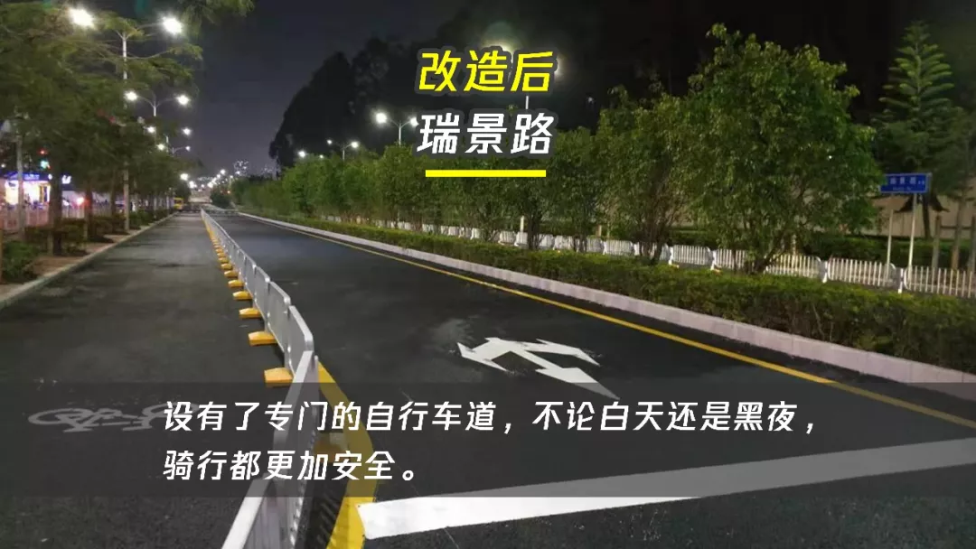 采用港式護(hù)欄在道路雙向各縮減一條車道,隔離出兩條非機(jī)動車道,保障騎行者的便捷出行,并通過在路口處的無縫連接處理,打造騎行微循環(huán),根本性解決該片區(qū)非機(jī)動車出行難題。