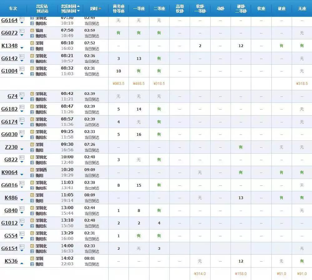 從深圳到郴州最快是2小時31分,票價最低為91元。