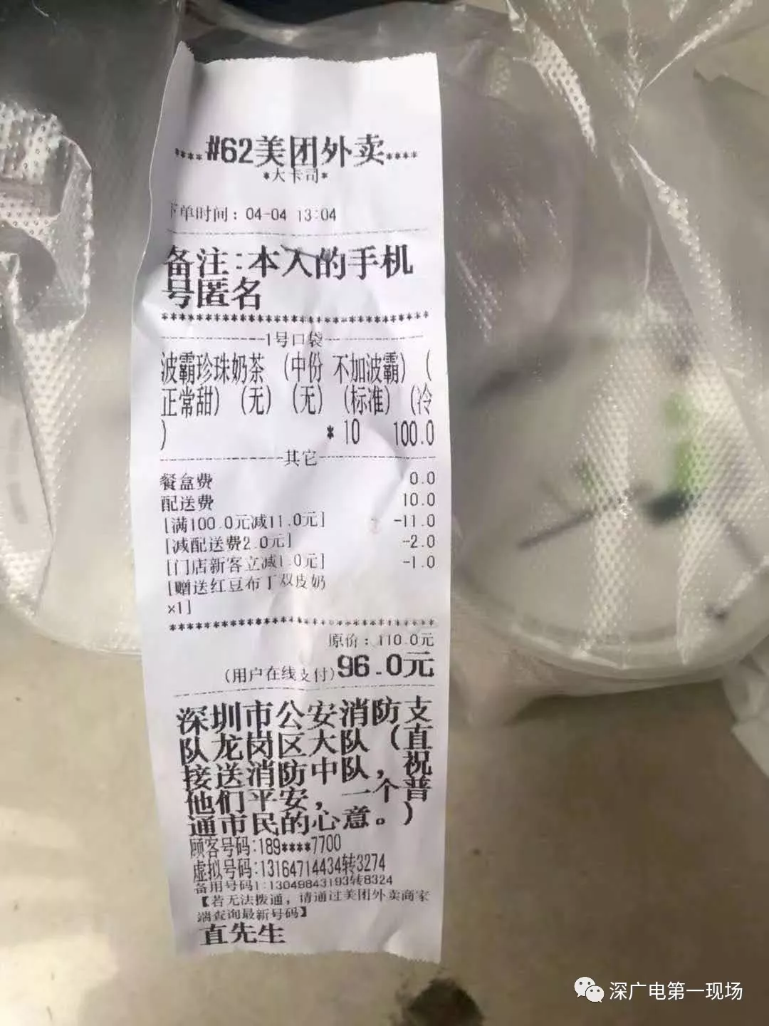 ▲在龍崗中隊(duì),也有外賣員送來匿名禮物