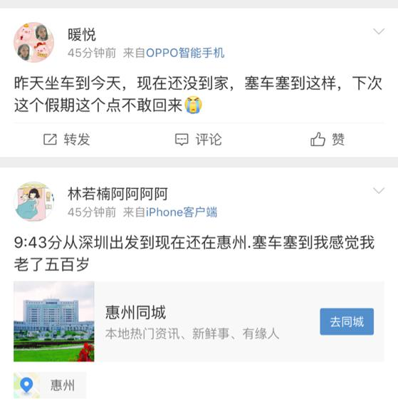 有坐大巴的朋友因?yàn)槿嚂r(shí)間遠(yuǎn)超預(yù)期,遇上手機(jī)快沒(méi)電,心急不已,只能斷斷續(xù)續(xù)地開(kāi)了又關(guān)機(jī),以便與接他的家人保持聯(lián)系又留住最后一點(diǎn)電量。而家人也在當(dāng)?shù)乜h城等了他四五個(gè)小時(shí)。