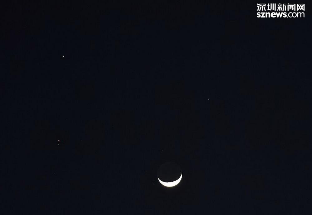 深圳新聞網(wǎng)2019年4月10日訊(記者 楊浩翰)相信不少市民朋友聽過(guò)“木星伴月”和“金星伴月”的概念。4月9日是農(nóng)歷初五,深圳的夜空中就出現(xiàn)了“雙星伴月”的天體現(xiàn)象。因?yàn)闄C(jī)緣巧合,昨晚彎彎的月亮從亮恒星畢宿五和火星中間路過(guò),三者相聚在一起,就出現(xiàn)了“月亮笑臉”。