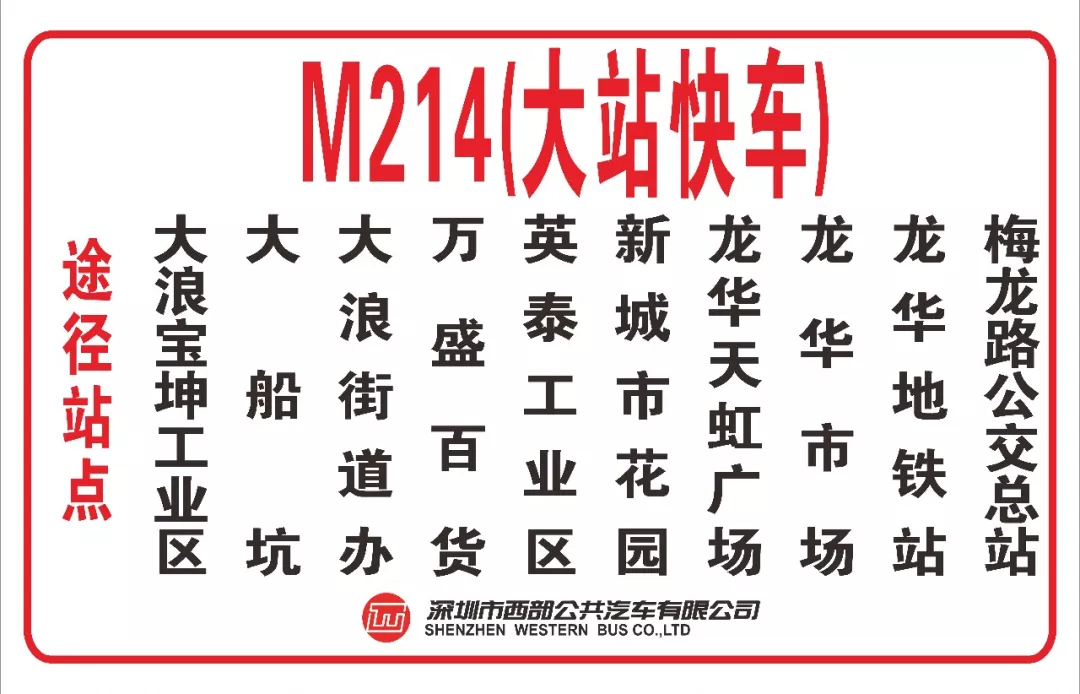 ??浚捍罄藢毨すI(yè)區(qū)、大船坑、大浪街道辦、萬盛百貨、英泰工業(yè)區(qū)、新城市花園、龍華天虹商場、龍華市場、龍華地鐵站