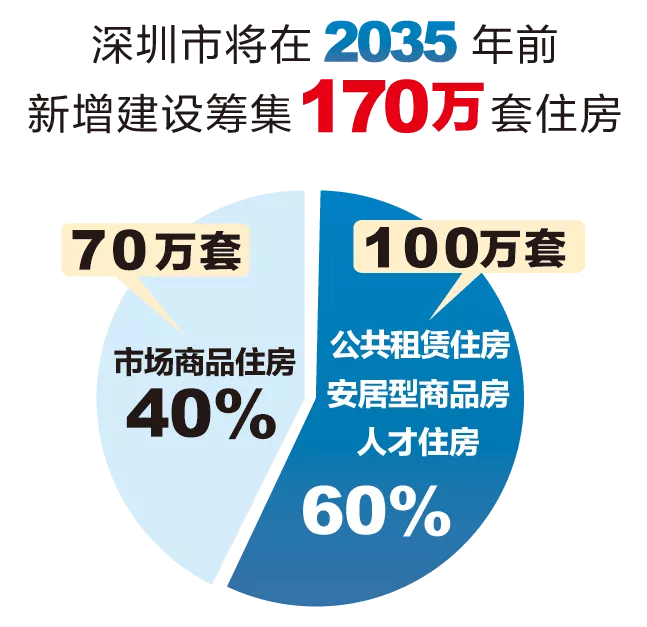 市住建局相關(guān)負(fù)責(zé)人介紹,2018年8月,市政府出臺(tái)了《關(guān)于深化住房制度改革加快建立多主體供給多渠道保障租購(gòu)并舉的住房供應(yīng)與保障體系的意見(jiàn)》(以下簡(jiǎn)稱(chēng)“主文件”)。新時(shí)代,深圳市將針對(duì)不同收入水平的居民和專(zhuān)業(yè)人才等各類(lèi)群體,著力構(gòu)建多層次、差異化、全覆蓋的住房供應(yīng)與保障體系,努力實(shí)現(xiàn)全體市民住有所居?!爸魑募碧岢錾钲谑袑⒃?035年前新增建設(shè)籌集170萬(wàn)套住房,其中:市場(chǎng)商品住房70萬(wàn)套,占40%左右;公租房、安居型商品房和人才住房共100萬(wàn)套,占60%左右。