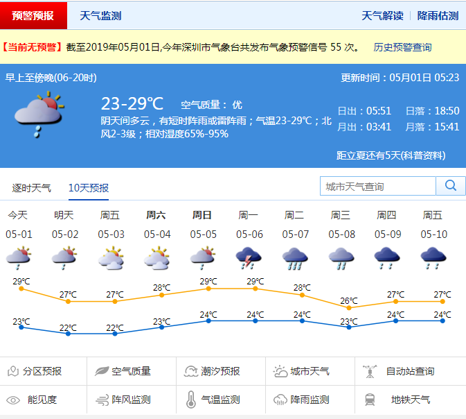 市民注意!五一假期前期深圳降水較頻繁