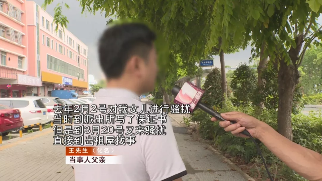 王先生表示,僅去年上半年時間,松崗派出所就進行了3次調(diào)解,但是小張還是不依不饒。王先生的女兒琳琳告訴記者,去年四月,不堪其擾的她,甚至躲到了湖南老家。但是沒想到,小張的騷擾還在繼續(xù)。