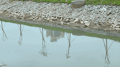 新鋪的河堤斜斜沒入水中