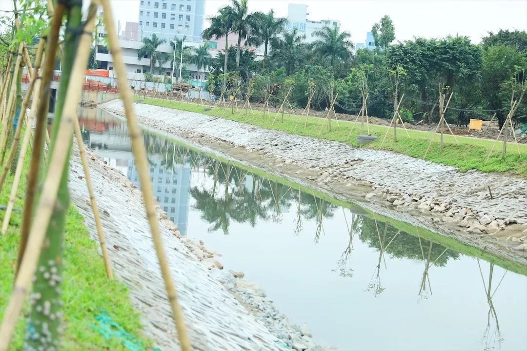 張堯:“石圍涌的治理長度大約808米,自2018年7月開工治理以來,到目前基本完成了所有的施工內(nèi)容,主要包括河道主體施工、沿線截污與景觀綠化,將之前的臭水溝改造成了綠草如茵、游人不斷的景觀長廊?!?/span>