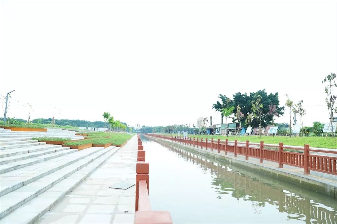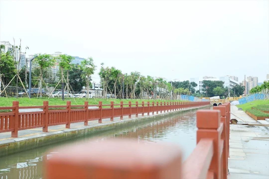 看到兩岸新修的朱紅色仿木欄桿