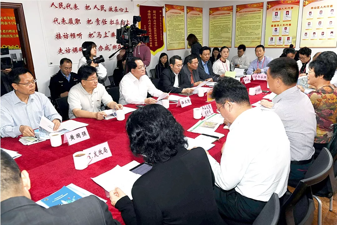 ▲駱文智、王強(qiáng)、麥林光等市、區(qū)領(lǐng)導(dǎo)參加月亮灣片區(qū)代表議事會。消息報(bào)記者黃雪波攝