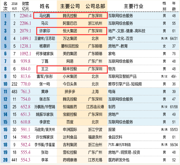 人均財(cái)富從去年191.3億元下降至162億元,前十名中深圳三人上榜