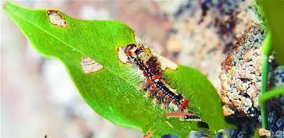 據(jù)說這種蟲會把樹葉吃光,而且掉落在行人身上會分泌粘液讓個別人過敏
