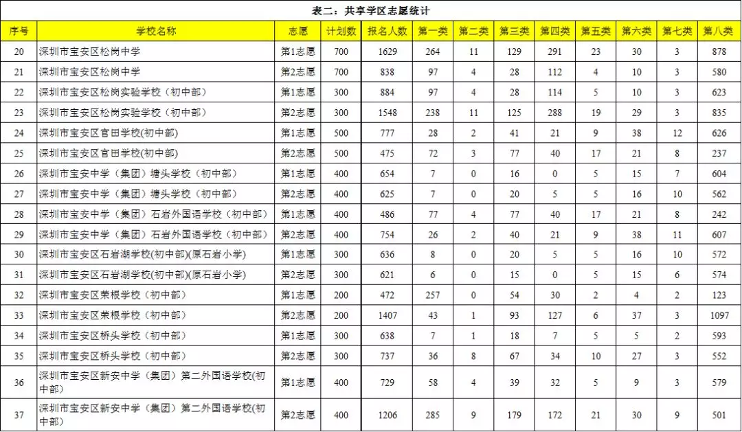 表二:共享學區(qū)志愿統(tǒng)計